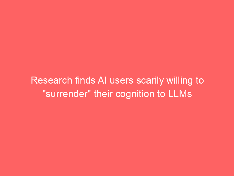 Research finds AI users scarily willing to “surrender” their cognition to LLMs