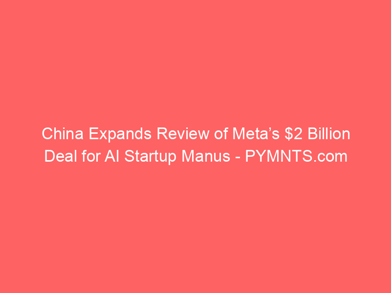 China Expands Review of Meta’s $2 Billion Deal for AI Startup Manus  PYMNTS.com