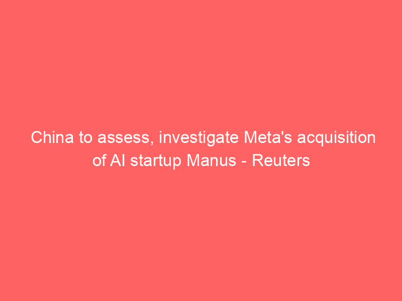 China to assess, investigate Meta’s acquisition of AI startup Manus – Reuters / Artificial intelligence (AI) / By hi@aiweekly.co.in China to assess, investigate Meta’s acquisition of AI startup Manus Reuters