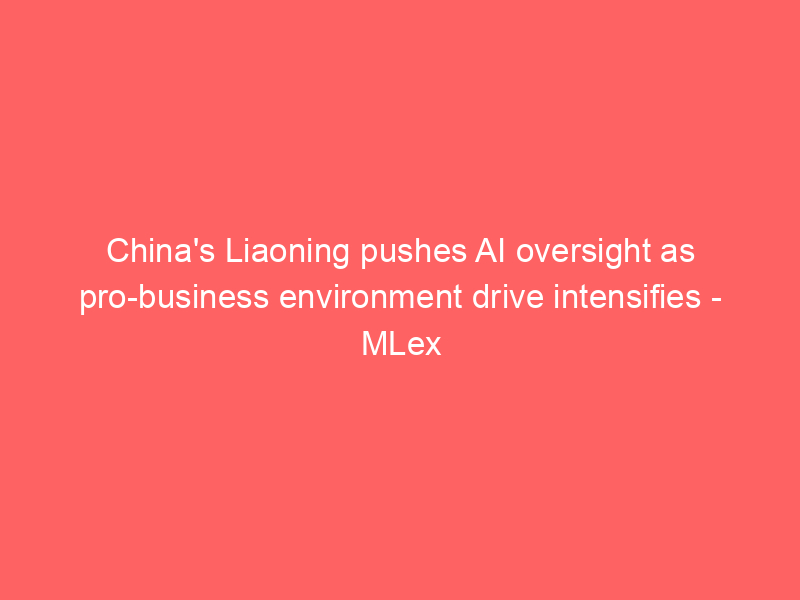 China’s Liaoning pushes AI oversight as pro-business environment drive intensifies – MLex / Artificial intelligence (AI) / By hi@aiweekly.co.in China’s Liaoning pushes AI oversight as pro-business environment drive intensifies MLex