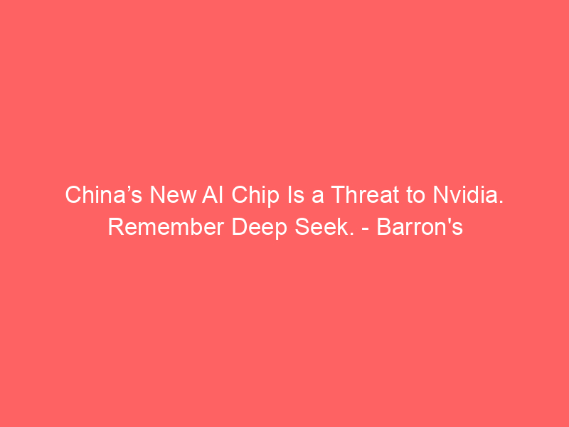China’s New AI Chip Is a Threat to Nvidia. Remember Deep Seek. – Barron’s / Artificial intelligence (AI) / By hi@aiweekly.co.in China’s New AI Chip Is a Threat to Nvidia. Remember Deep Seek. Barron’s