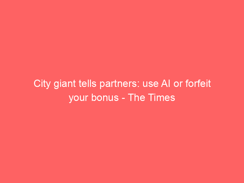 City giant tells partners: use AI or forfeit your bonus – The Times / Artificial intelligence (AI) / By hi@aiweekly.co.in City giant tells partners: use AI or forfeit your bonus The Times