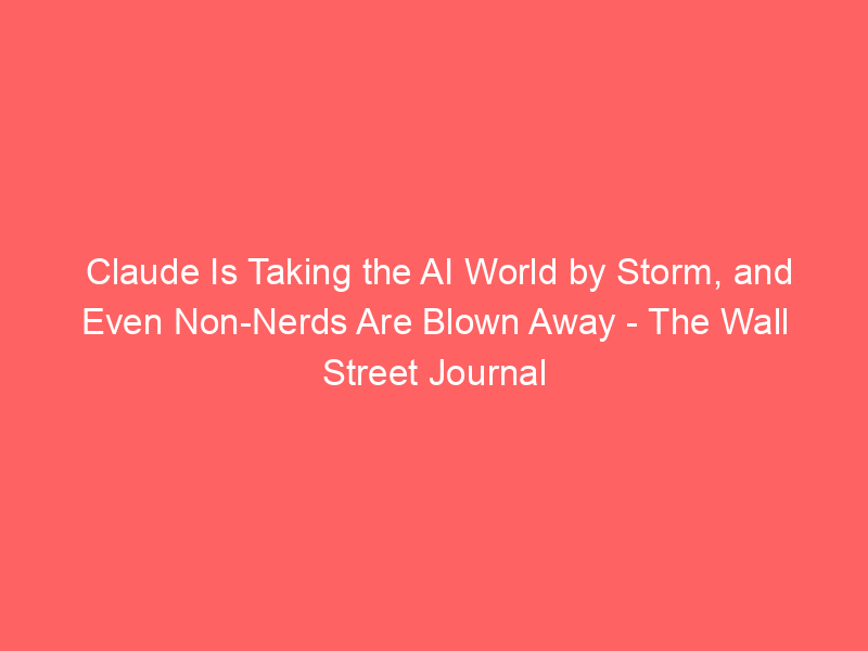 Claude Is Taking the AI World by Storm, and Even Non-Nerds Are Blown Away – The Wall Street Journal / ai, AI (Artificial Intelligence), Artificial Intelligence / By hi@aiweekly.co.in Claude Is Taking the AI World by Storm, and Even Non-Nerds Are Blown Away The Wall Street Journal