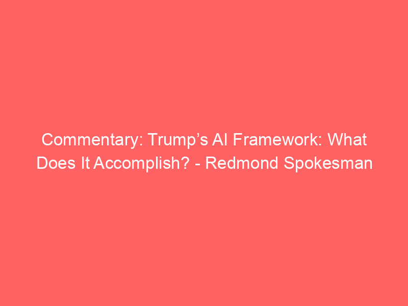 Commentary: Trump’s AI Framework: What Does It Accomplish? – Redmond Spokesman / Artificial intelligence (AI) / By hi@aiweekly.co.in Commentary: Trump’s AI Framework: What Does It Accomplish? Redmond Spokesman