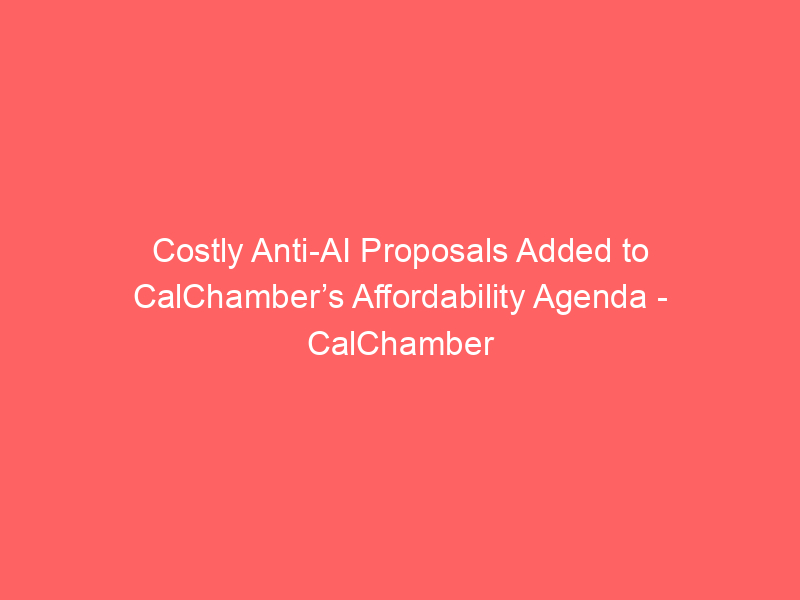 Costly Anti-AI Proposals Added to CalChamber’s Affordability Agenda – CalChamber / Artificial intelligence (AI) / By hi@aiweekly.co.in Costly Anti-AI Proposals Added to CalChamber’s Affordability Agenda CalChamber
