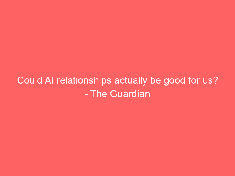 Could AI relationships actually be good for us? – The Guardian / Artificial intelligence (AI) / By hi@aiweekly.co.in Could AI relationships actually be good for us? The Guardian