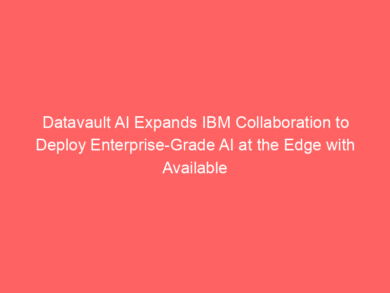 Datavault AI Expands IBM Collaboration to Deploy Enterprise-Grade AI at the Edge with Available Infrastructure’s SanQtum AI Platform – IBM Newsroom
