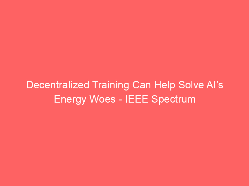 Decentralized Training Can Help Solve AI’s Energy Woes – IEEE Spectrum / Artificial intelligence (AI) / By hi@aiweekly.co.in Decentralized Training Can Help Solve AI’s Energy Woes IEEE Spectrum