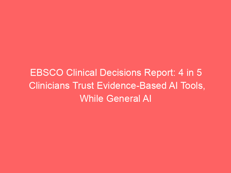 EBSCO Clinical Decisions Report: 4 in 5 Clinicians Trust Evidence-Based AI Tools, While General AI Widens the Patient Trust Gap – Newswise / Artificial intelligence (AI) / By hi@aiweekly.co.in EBSCO Clinical Decisions Report: 4 in 5 Clinicians Trust Evidence-Based AI Tools, While General AI Widens the Patient Trust Gap Newswise