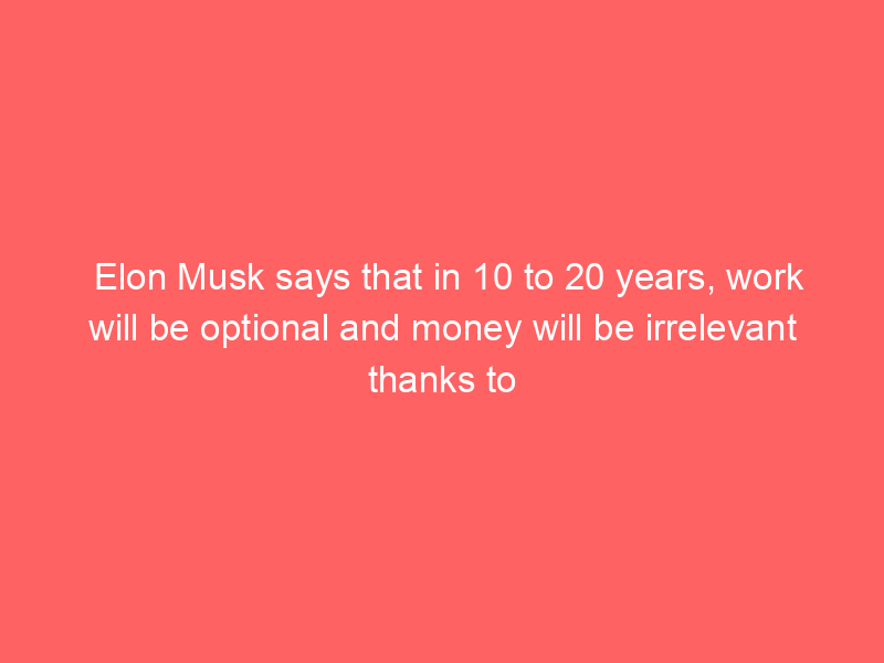 Elon Musk says that in 10 to 20 years, work will be optional and money will be irrelevant thanks to AI and robotics – Fortune / ai, AI (Artificial Intelligence), Artificial Intelligence / By hi@aiweekly.co.in Elon Musk says that in 10 to 20 years, work will be optional and money will be irrelevant thanks to AI and robotics Fortune