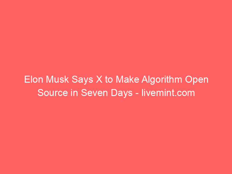 Elon Musk Says X to Make Algorithm Open Source in Seven Days – livemint.com / ai, AI (Artificial Intelligence), Artificial Intelligence / By hi@aiweekly.co.in Elon Musk Says X to Make Algorithm Open Source in Seven Days livemint.com