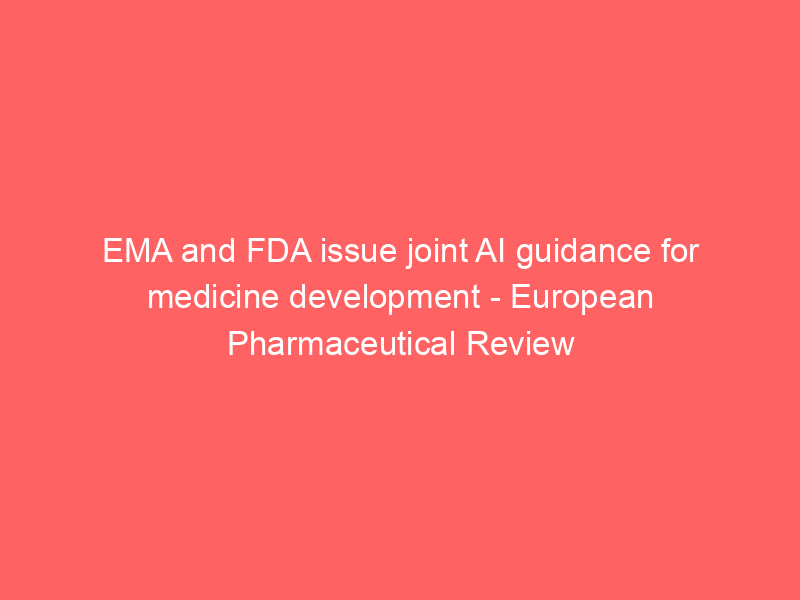EMA and FDA issue joint AI guidance for medicine development – European Pharmaceutical Review / Artificial intelligence (AI) / By hi@aiweekly.co.in EMA and FDA issue joint AI guidance for medicine development European Pharmaceutical Review