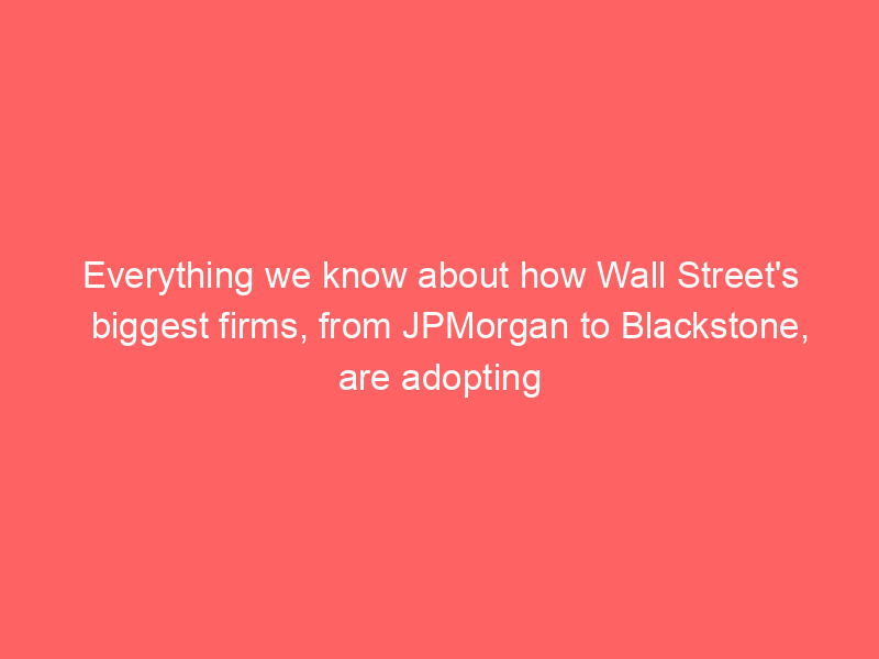 Everything we know about how Wall Street’s biggest firms, from JPMorgan to Blackstone, are adopting AI – Business Insider / Artificial intelligence (AI) / By hi@aiweekly.co.in Everything we know about how Wall Street’s biggest firms, from JPMorgan to Blackstone, are adopting AI Business Insider
