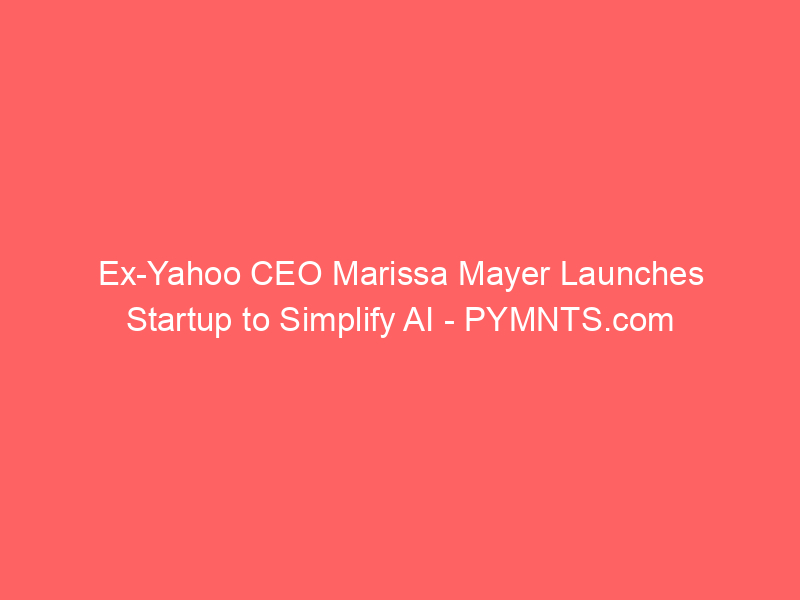 Ex-Yahoo CEO Marissa Mayer Launches Startup to Simplify AI – PYMNTS.com / Artificial intelligence (AI) / By hi@aiweekly.co.in Ex-Yahoo CEO Marissa Mayer Launches Startup to Simplify AI PYMNTS.com