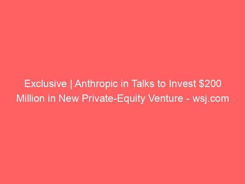 Exclusive | Anthropic in Talks to Invest $200 Million in New Private-Equity Venture – wsj.com