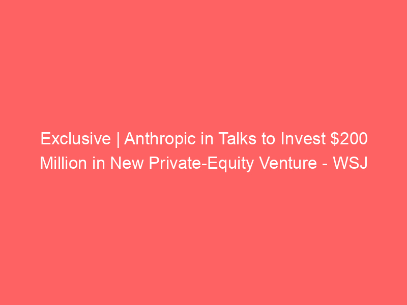 Exclusive | Anthropic in Talks to Invest $200 Million in New Private-Equity Venture – WSJ / Artificial intelligence (AI) / By hi@aiweekly.co.in Exclusive | Anthropic in Talks to Invest $200 Million in New Private-Equity Venture WSJ