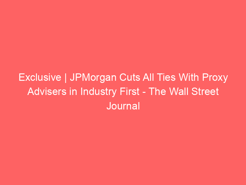 Exclusive | JPMorgan Cuts All Ties With Proxy Advisers in Industry First – The Wall Street Journal
