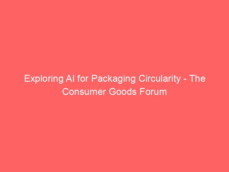 Exploring AI for Packaging Circularity – The Consumer Goods Forum / Artificial intelligence (AI) / By hi@aiweekly.co.in Exploring AI for Packaging Circularity The Consumer Goods Forum