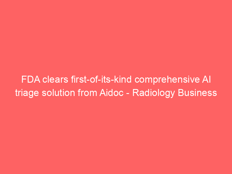 FDA clears first-of-its-kind comprehensive AI triage solution from Aidoc – Radiology Business / Artificial intelligence (AI) / By hi@aiweekly.co.in FDA clears first-of-its-kind comprehensive AI triage solution from Aidoc Radiology Business