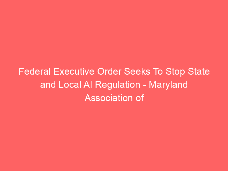Federal Executive Order Seeks To Stop State and Local AI Regulation – Maryland Association of Counties