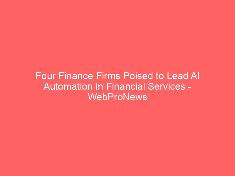 Four Finance Firms Poised to Lead AI Automation in Financial Services – WebProNews / Artificial intelligence (AI) / By hi@aiweekly.co.in Four Finance Firms Poised to Lead AI Automation in Financial Services WebProNews