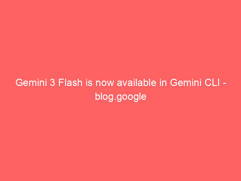 Gemini 3 Flash is now available in Gemini CLI – blog.google / Artificial Intelligence / By hi@aiweekly.co.in Gemini 3 Flash is now available in Gemini CLI blog.google