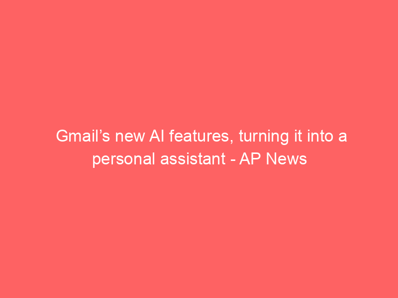 Gmail’s new AI features, turning it into a personal assistant – AP News / Artificial intelligence (AI) / By hi@aiweekly.co.in Gmail’s new AI features, turning it into a personal assistant AP News