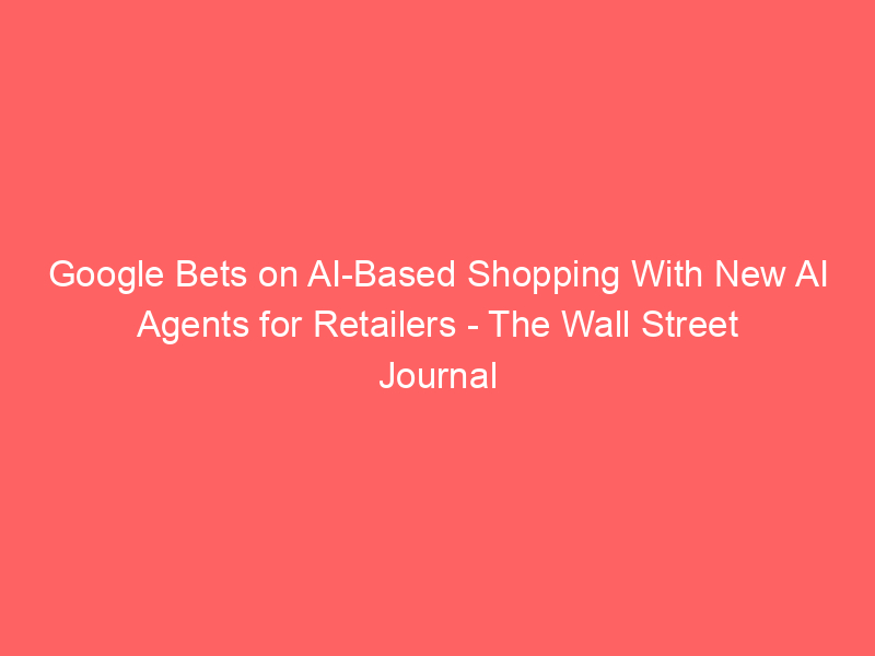 Google Bets on AI-Based Shopping With New AI Agents for Retailers – The Wall Street Journal / Artificial intelligence (AI) / By hi@aiweekly.co.in Google Bets on AI-Based Shopping With New AI Agents for Retailers The Wall Street Journal