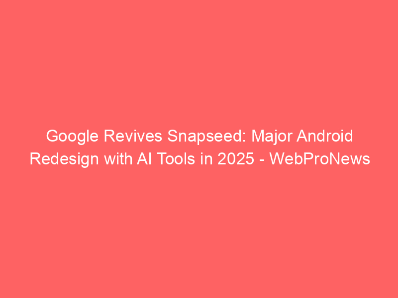 Google Revives Snapseed: Major Android Redesign with AI Tools in 2025 – WebProNews / Artificial intelligence (AI) / By hi@aiweekly.co.in Google Revives Snapseed: Major Android Redesign with AI Tools in 2025 WebProNews
