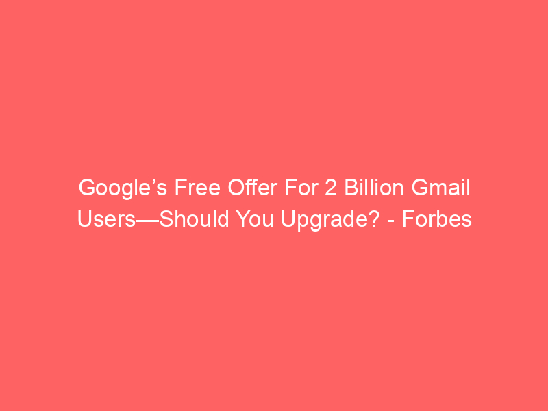 Google’s Free Offer For 2 Billion Gmail Users—Should You Upgrade? – Forbes / ai, AI (Artificial Intelligence), Artificial Intelligence / By hi@aiweekly.co.in Google’s Free Offer For 2 Billion Gmail Users—Should You Upgrade? Forbes