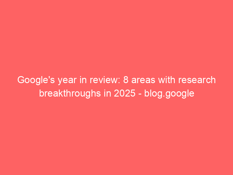 Google’s year in review: 8 areas with research breakthroughs in 2025 – blog.google / Artificial Intelligence / By hi@aiweekly.co.in Google’s year in review: 8 areas with research breakthroughs in 2025 blog.google