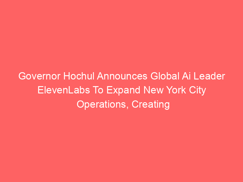 Governor Hochul Announces Global Ai Leader ElevenLabs To Expand New York City Operations, Creating 230 New Jobs – Empire State Development (ESD) (.gov) / Artificial intelligence (AI) / By hi@aiweekly.co.in Governor Hochul Announces Global Ai Leader ElevenLabs To Expand New York City Operations, Creating 230 New Jobs Empire State Development (ESD) (.gov)