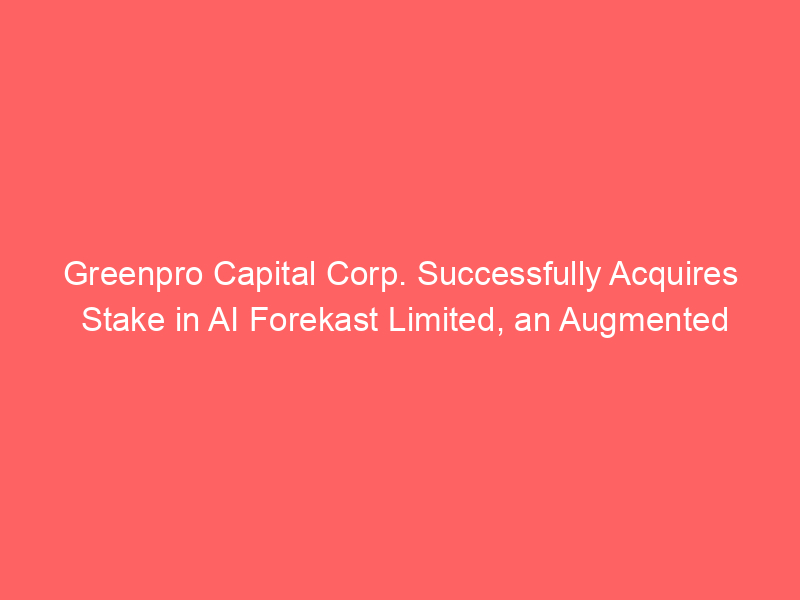 Greenpro Capital Corp. Successfully Acquires Stake in AI Forekast Limited, an Augmented Intelligence Provider – FinancialContent