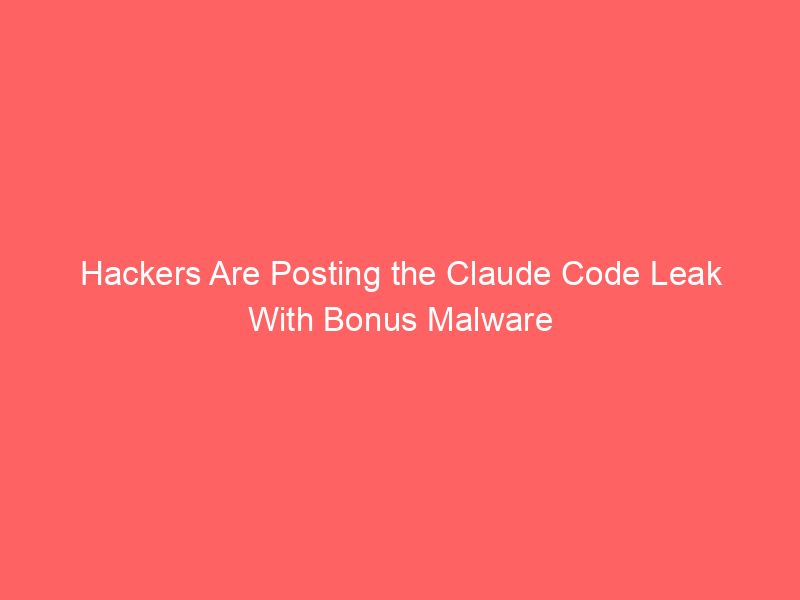 Hackers Are Posting the Claude Code Leak With Bonus Malware