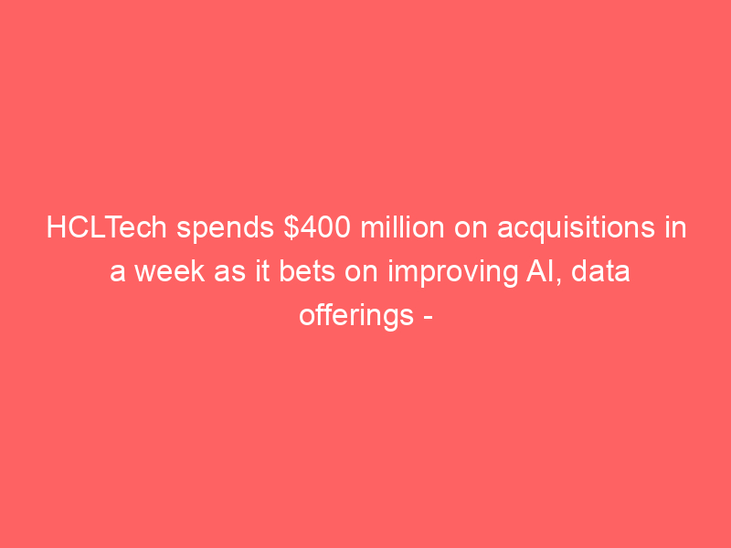 HCLTech spends $400 million on acquisitions in a week as it bets on improving AI, data offerings livemint.comHCL Technologies’ arm acquires Jaspersoft from Cloud Software Group UpstoxHCLSoftware set to buy agentic AI firm Wobby for $5.3 million The Economic TimesHCL Tech shares in focus as firm to acquire Belgian start-up Wobby MSNHCLSoftware ups AI, Data Stack with Wobby, Jaspersoft Acquisition Analytics India Magazine