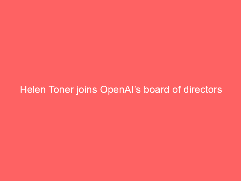 Helen Toner joins OpenAI’s board of directors / Artificial Intelligence, Company / By hi@aiweekly.co.in Today, we’re excited to announce the appointment of Helen Toner to our board of directors.
