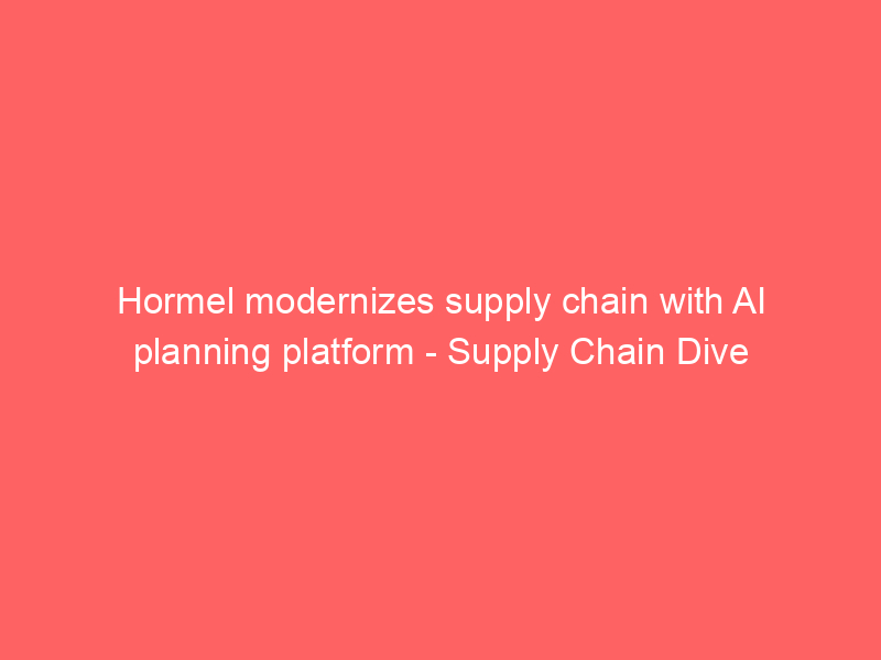 Hormel modernizes supply chain with AI planning platform – Supply Chain Dive / Artificial intelligence (AI) / By hi@aiweekly.co.in Hormel modernizes supply chain with AI planning platform Supply Chain Dive