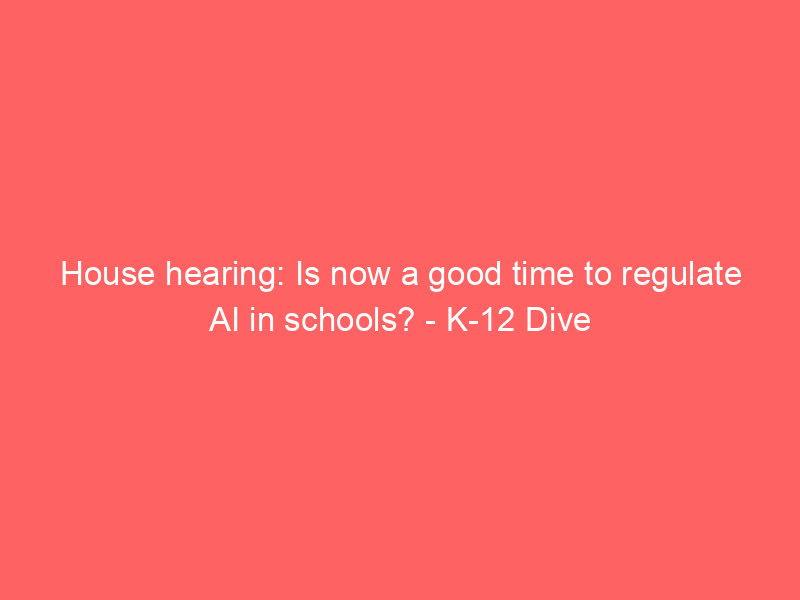 House hearing: Is now a good time to regulate AI in schools? – K-12 Dive / Artificial intelligence (AI) / By hi@aiweekly.co.in House hearing: Is now a good time to regulate AI in schools? K-12 Dive