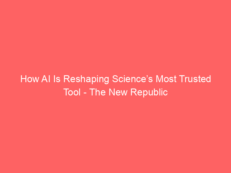 How AI Is Reshaping Science’s Most Trusted Tool – The New Republic / Artificial intelligence (AI) / By hi@aiweekly.co.in How AI Is Reshaping Science’s Most Trusted Tool The New Republic