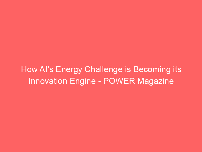 How AI’s Energy Challenge is Becoming its Innovation Engine – POWER Magazine