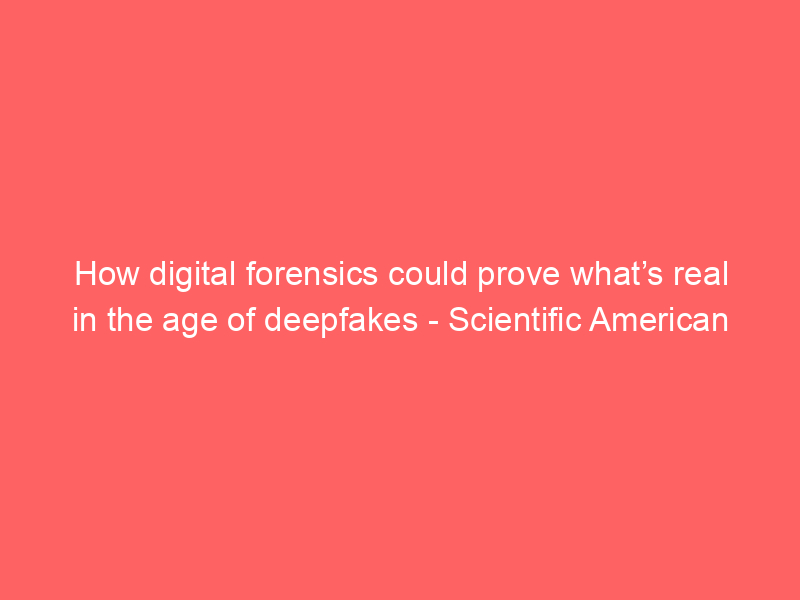 How digital forensics could prove what’s real in the age of deepfakes – Scientific American