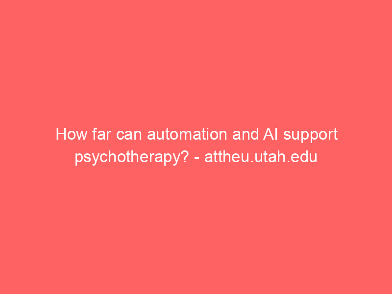 How far can automation and AI support psychotherapy? – attheu.utah.edu / Artificial intelligence (AI) / By hi@aiweekly.co.in How far can automation and AI support psychotherapy? attheu.utah.edu
