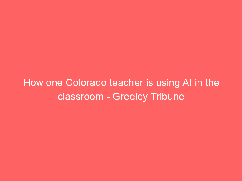 How one Colorado teacher is using AI in the classroom – Greeley Tribune / Artificial intelligence (AI) / By hi@aiweekly.co.in How one Colorado teacher is using AI in the classroom Greeley Tribune