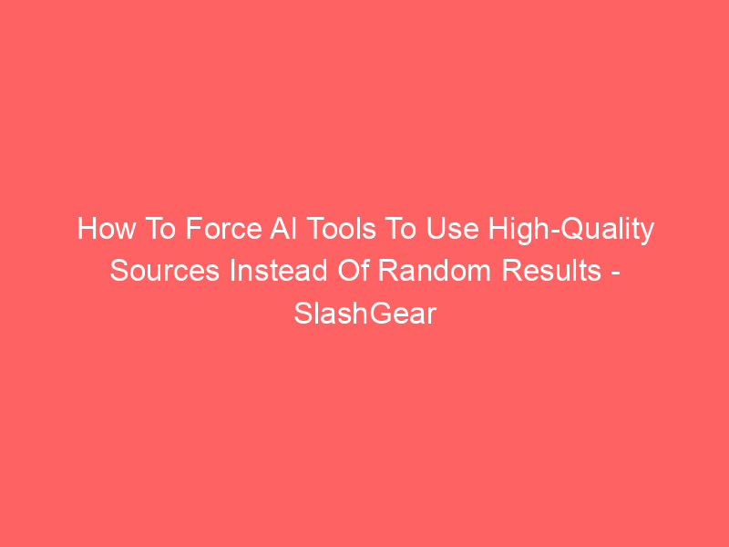 How To Force AI Tools To Use High-Quality Sources Instead Of Random Results – SlashGear / Artificial intelligence (AI) / By hi@aiweekly.co.in How To Force AI Tools To Use High-Quality Sources Instead Of Random Results SlashGear