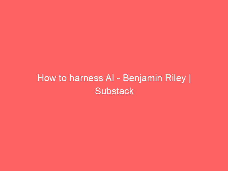 How to harness AI – Benjamin Riley | Substack / Artificial intelligence (AI) / By hi@aiweekly.co.in How to harness AI Benjamin Riley | Substack