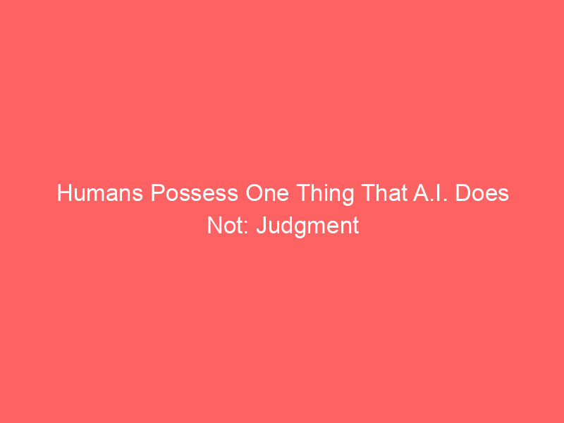 Humans Possess One Thing That A.I. Does Not: Judgment