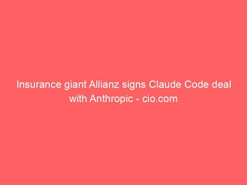 Insurance giant Allianz signs Claude Code deal with Anthropic – cio.com / Artificial intelligence (AI) / By hi@aiweekly.co.in Insurance giant Allianz signs Claude Code deal with Anthropic cio.com