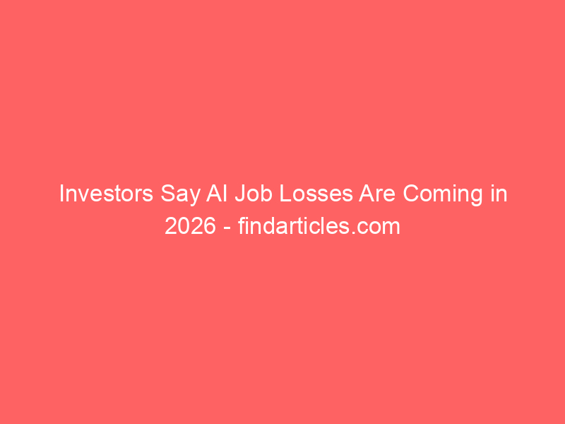 Investors Say AI Job Losses Are Coming in 2026 – findarticles.com / Artificial intelligence (AI) / By hi@aiweekly.co.in Investors Say AI Job Losses Are Coming in 2026 findarticles.com