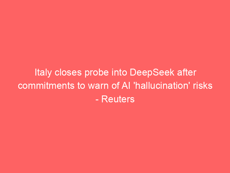 Italy closes probe into DeepSeek after commitments to warn of AI ‘hallucination’ risks – Reuters / Artificial intelligence (AI) / By hi@aiweekly.co.in Italy closes probe into DeepSeek after commitments to warn of AI ‘hallucination’ risks Reuters