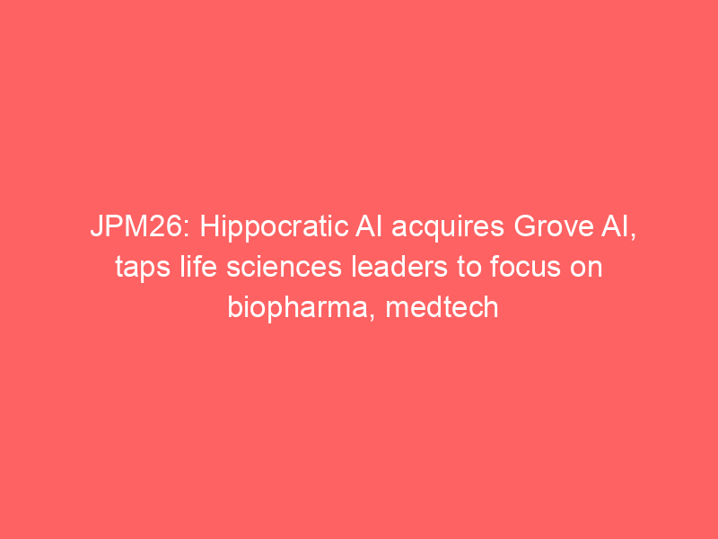 JPM26: Hippocratic AI acquires Grove AI, taps life sciences leaders to focus on biopharma, medtech – Fierce Healthcare / Artificial intelligence (AI) / By hi@aiweekly.co.in JPM26: Hippocratic AI acquires Grove AI, taps life sciences leaders to focus on biopharma, medtech Fierce Healthcare